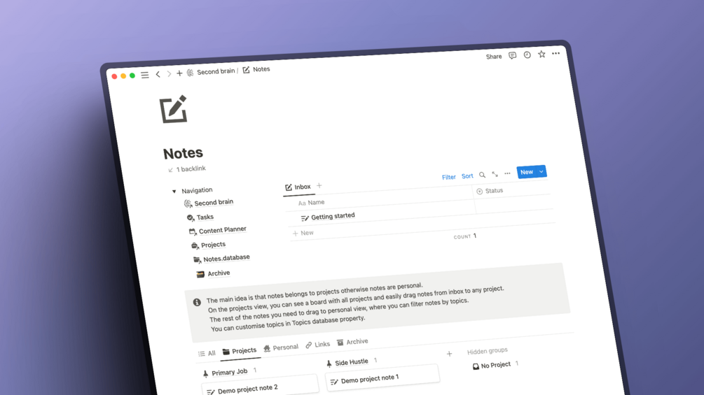The advanced view for notes offers a unique and organized approach to note-taking. With the quick capture block, creating a note is a breeze. You can then assign it to any project or topic within the single database, making it easy to access and manage your notes.
