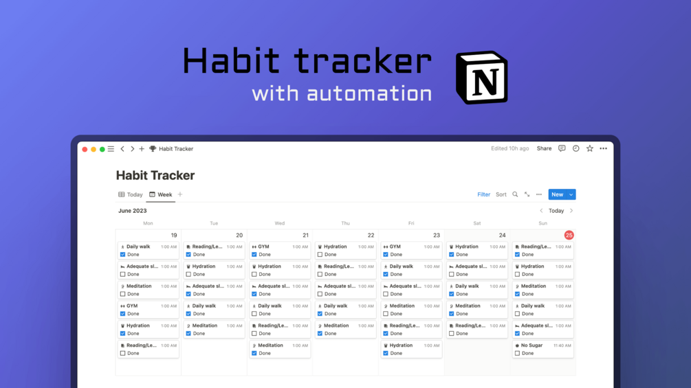 Effortless Automation: With this system, set up your habits only once and have them automatically created for you every day. Say goodbye to the tedious manual daily habits creation and hello to more time for what truly matters.